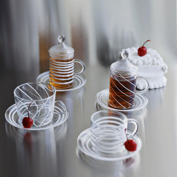 Abstract Cappuccino Cup ,Glazed Satin Saucer - طقم اكواب كابتشينو مع صحن  بنقشAbstract